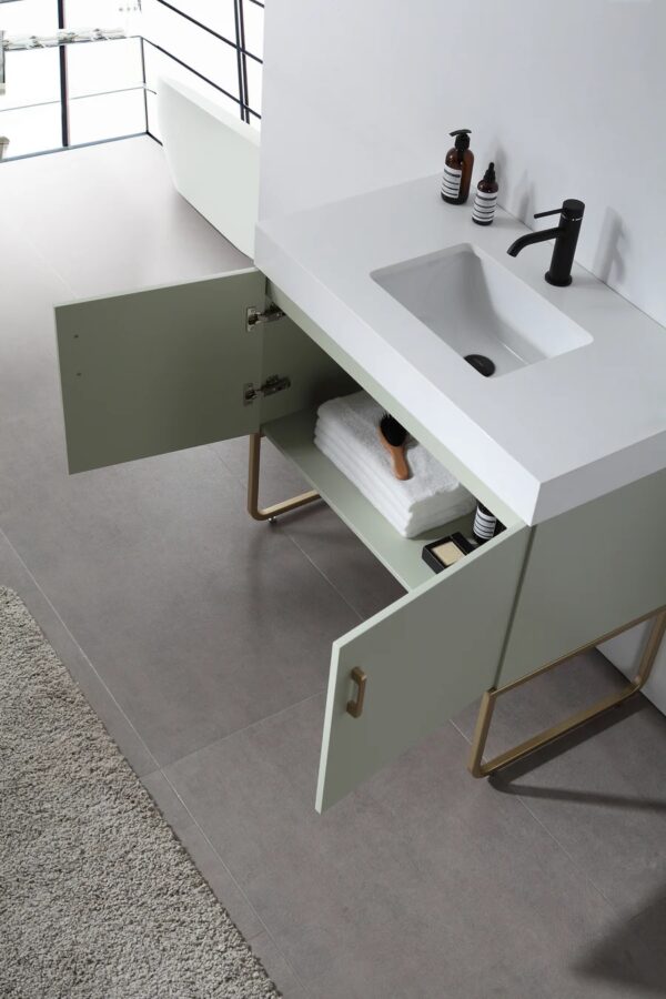 Vanity Base Color/Finish: PINE MIST/DARK GOLD STEEL