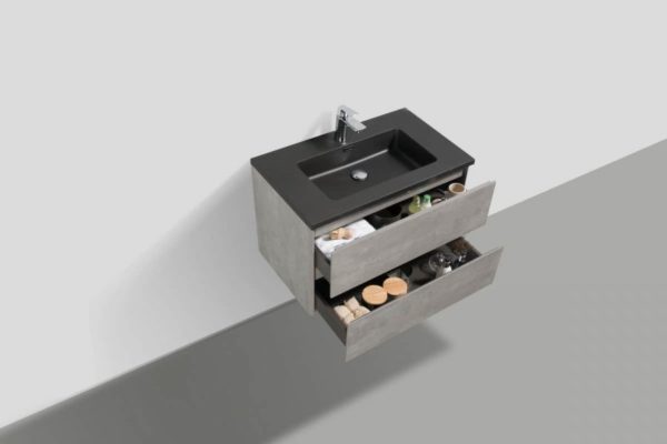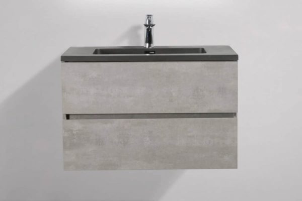36 ” Vanity in Cement Grey with Acrylic Vanity Top in Matte Black