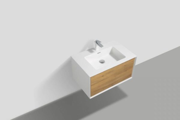 Keep cleaners and bathroom tissue out of sight but close at hand with this convenient bathroom vanity. Stunning yet simple with its sleek and contemporary design approach. Available in a natural finish for a look of understated elegance. The integrated white solid surface sink is assigned to a simple look that could just define the simplicity of your bathroom. If a sleek modern look is what you are looking for, this vanity has everything you need in a bathroom vanity.