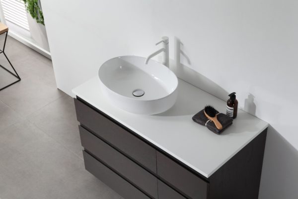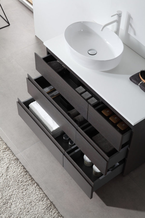 Front of Bathroom Cabinets: CHARCOAL OAK (Resin Surface)