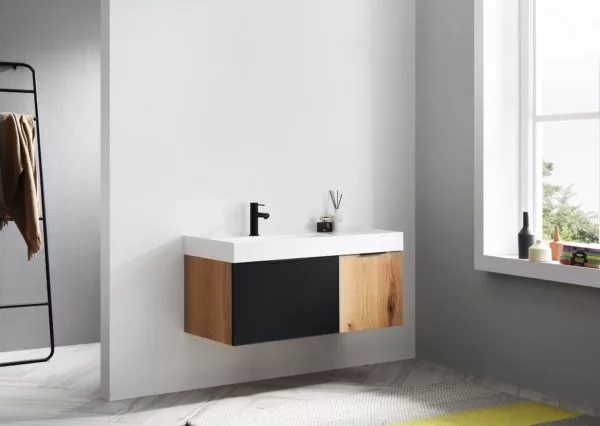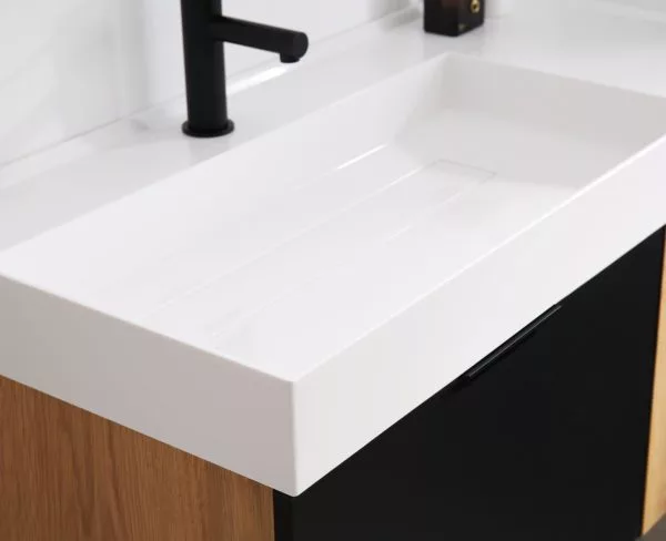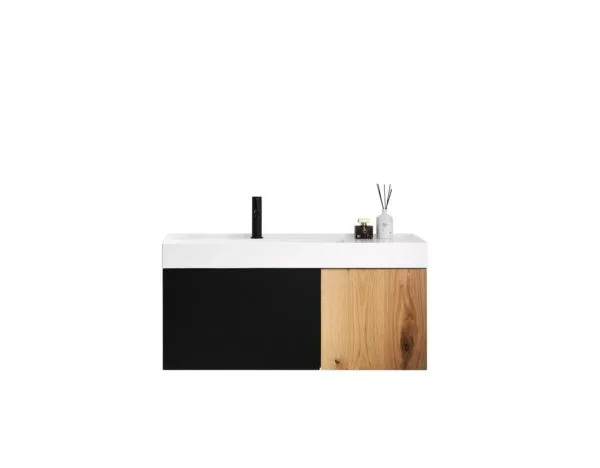 Vanity Base Color/Finish: MATTE BLACK GLASS/MAPLE