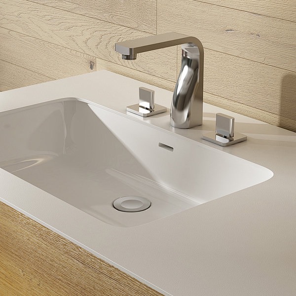 Wood pattern encounters the white porcelain slab, perfectly blended as one,