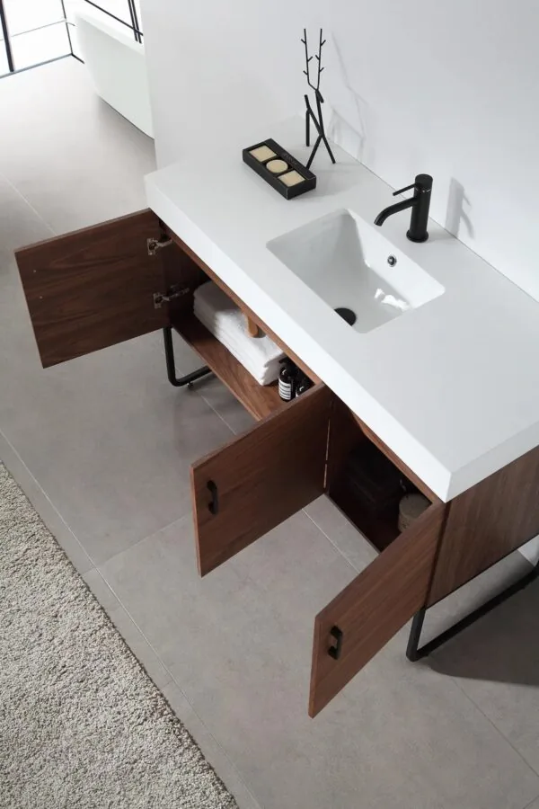 Vanity Base Color/Finish: WALNUT/MATTE BLACK STEEL