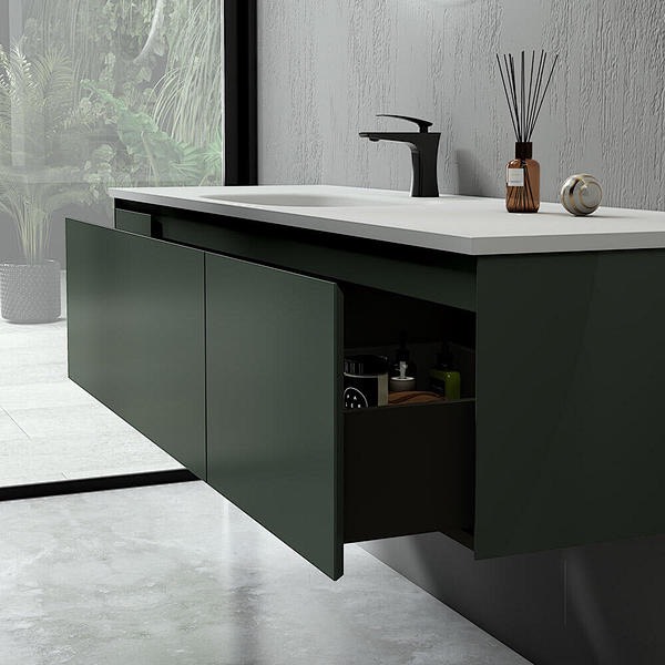 Finalize your bathroom remodel in style with this Bathroom Vanity Set. Crafted from MDF wood and finished in a dark green hue, this piece showcases a contemporary look perfect for modern aesthetics. A slab of stone rounds out the piece up top, as well as one ceramic under-mount sink/integrated sink. When it comes to storage, this vanity is equipped with two drawers and a door for the essentials.