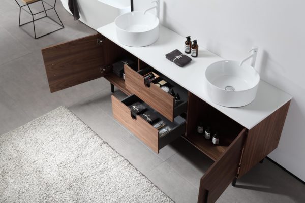 72” WALNUT MID-CENTURY FREESTANDING BATHROOM VANITY