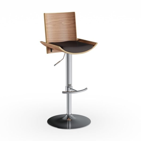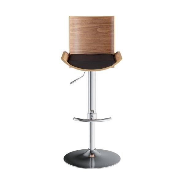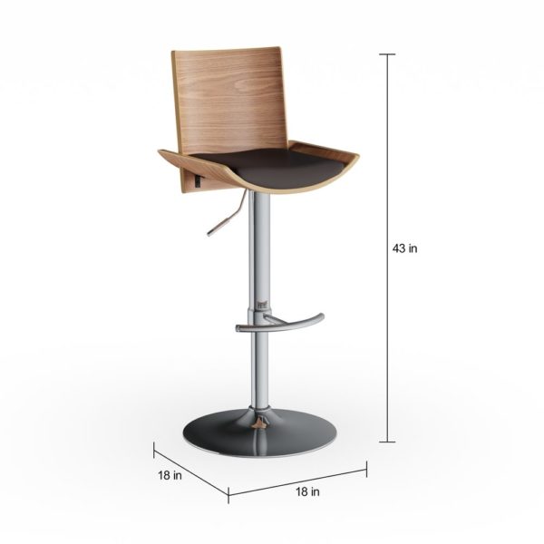 Adjustable Wood and Faux Leather Bar Stool – Walnut/Brown