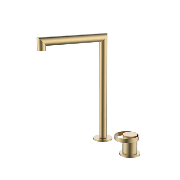 The brushed gold finish adds warmth and luxury while remaining resistant to fingerprints and corrosion. The minimalist single control knob allows for smooth and precise adjustment of water temperature and flow, providing both functionality and refined design.