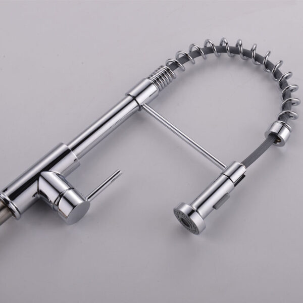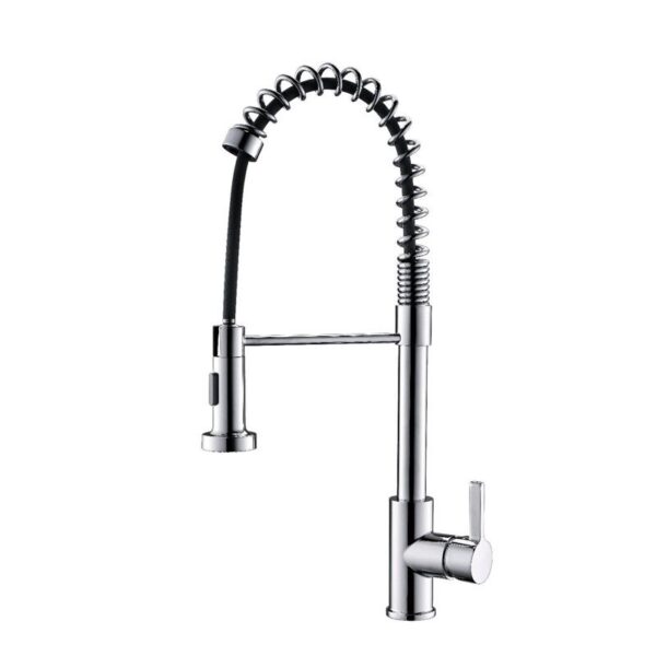 Upgrade your kitchen with this modern commercial-style pull-down kitchen faucet, designed to combine professional performance with sleek contemporary aesthetics. Its high-arc spring design not only adds a bold, industrial look but also provides maximum flexibility and convenience for everyday kitchen tasks.