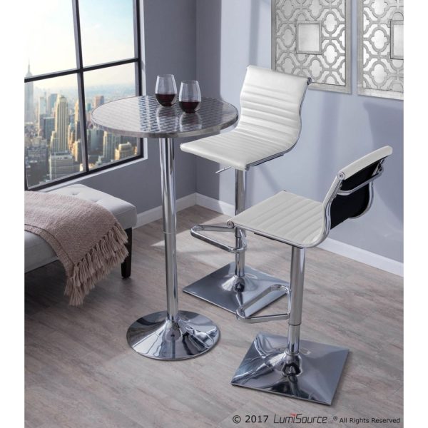 Contemporary Adjustable Bar Stool in Faux Leather – White