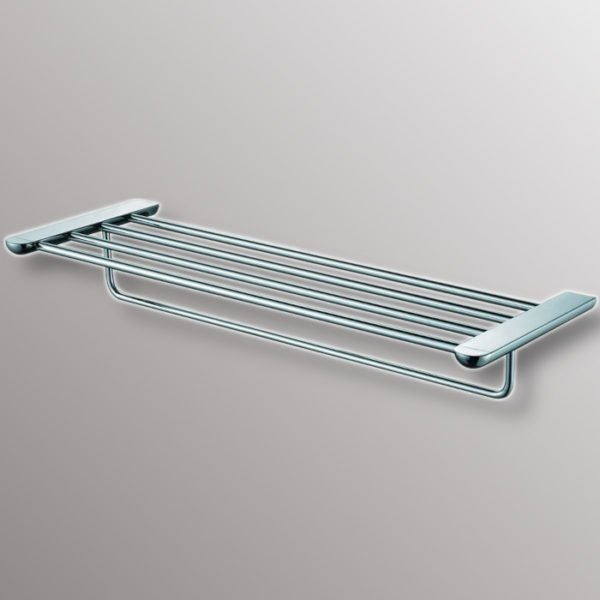 Double Bath Towel Shelf in Chrome and Brushed Nickel.