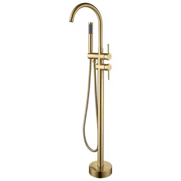 Upgrade your bathroom with this modern and sophisticated freestanding brass mixer faucet, designed for both functionality and style. Crafted from durable brass, this elegant fixture features a sleek bath spout and handshower combo with an adjustable spray head, giving you full control over water pressure for a personalized bathing experience.