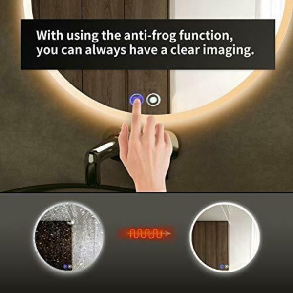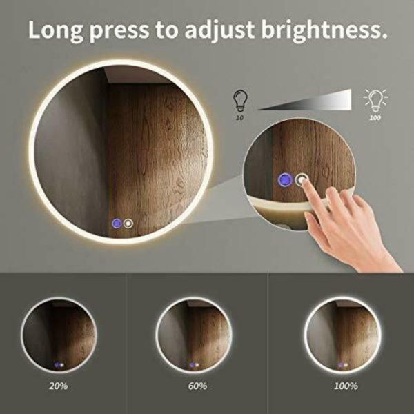 LED Bathroom Round Mirror, Dimmable Touch 30 Inch