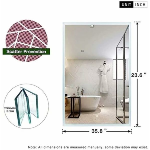 LED Touch Screen Dimmable Bathroom Sliver Frame Wall-Mounted Mirror – 26×37.8