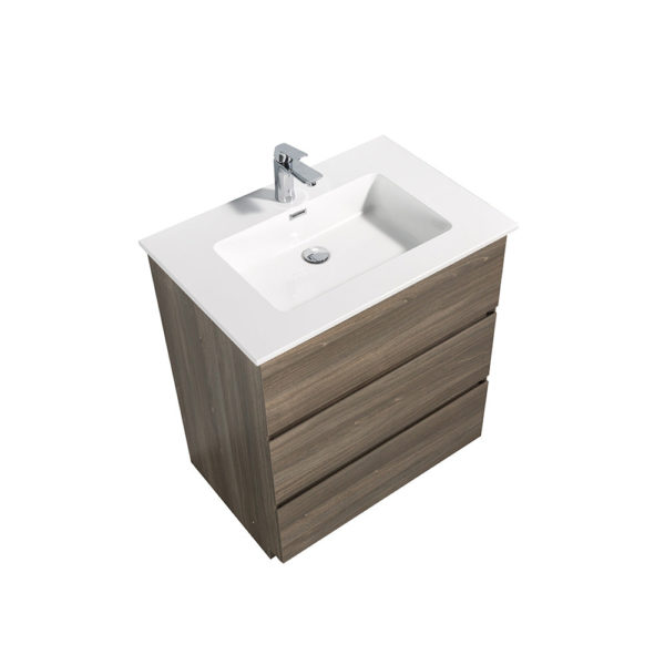 Freestanding bathroom vanity has a high-end white artificial stone integrated countertop with sink. With the U shaped drawers, the cabinet has plenty of storage space for all of your washing items. The freestanding feature makes the vanity flexible.