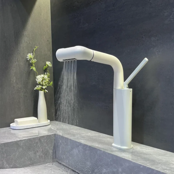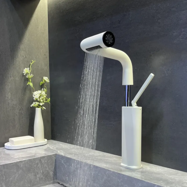 Upgrade your bathroom with this modern dual-function matte white faucet, designed to combine sleek style with versatile performance. Its elegant curved silhouette and clean minimalist design make it a perfect addition to contemporary bathrooms.