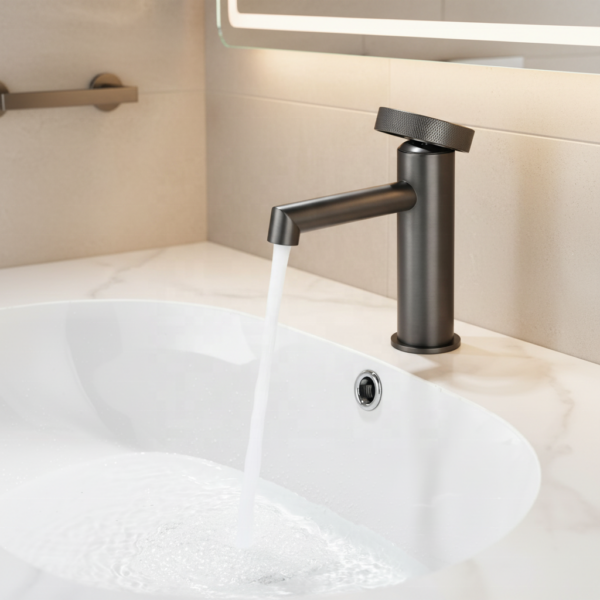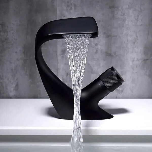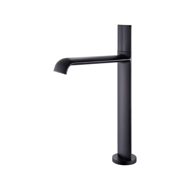 Add a bold, contemporary touch to your bathroom with this sleek matte black vessel sink faucet. Designed with clean lines and a minimalist silhouette, this tall faucet is perfect for modern vessel sinks and luxury bathroom vanities. Its elegant curved spout and streamlined vertical handle create a sophisticated look while offering smooth and precise water control.