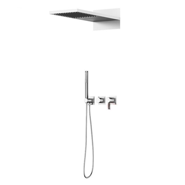 Enhance your bathroom with this sleek modern rainfall shower system, designed to combine minimalist aesthetics with everyday functionality. Featuring a large square rainfall shower head and a convenient handheld shower, this system provides a luxurious and comfortable shower experience.