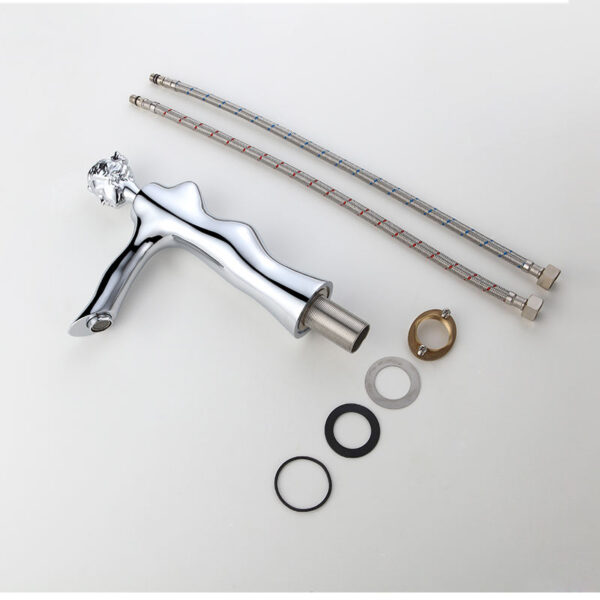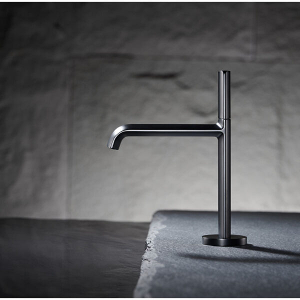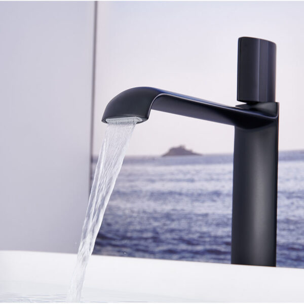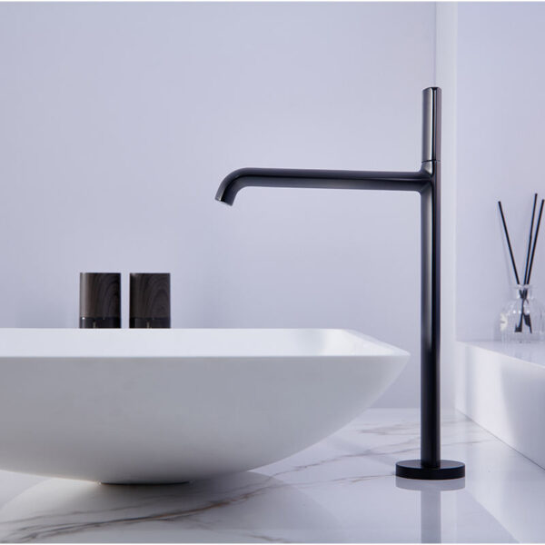 The tall design makes it perfect for vessel or above-counter sinks, while the slim single-lever handle allows for smooth and precise control of water temperature and flow. The combination of white and chrome finishes creates a bright, sophisticated appearance that pairs beautifully with stone, marble, or quartz countertops.