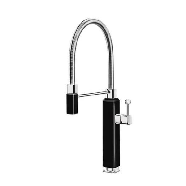 Surface Treatment – Polished; Installation Type – Deck Mounted; Number of Handles – Single Handle; Style – Contemporary; Valve Core Material – Ceramic; Number of Holes for Installation – Single Hole; Spray Type – Pull Down; Type – Black Hard Plastic Tube Kitchen Faucet