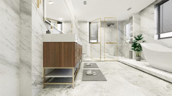 ROSEWOOD FREESTANDING VANITY WITH DOUBLE FAUCET HOLES REINFORCED ACRYLIC SINK