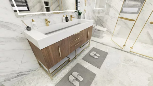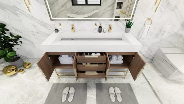 ROSEWOOD FREESTANDING VANITY WITH DOUBLE FAUCET HOLES REINFORCED ACRYLIC SINK