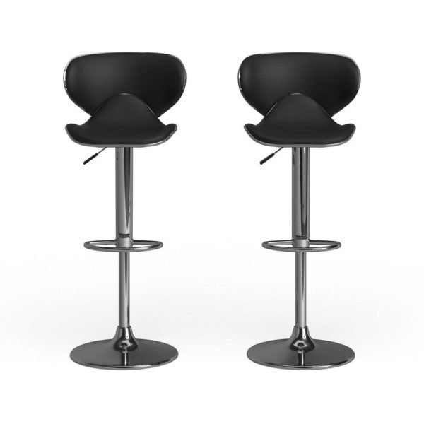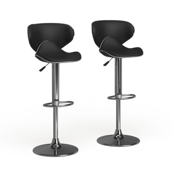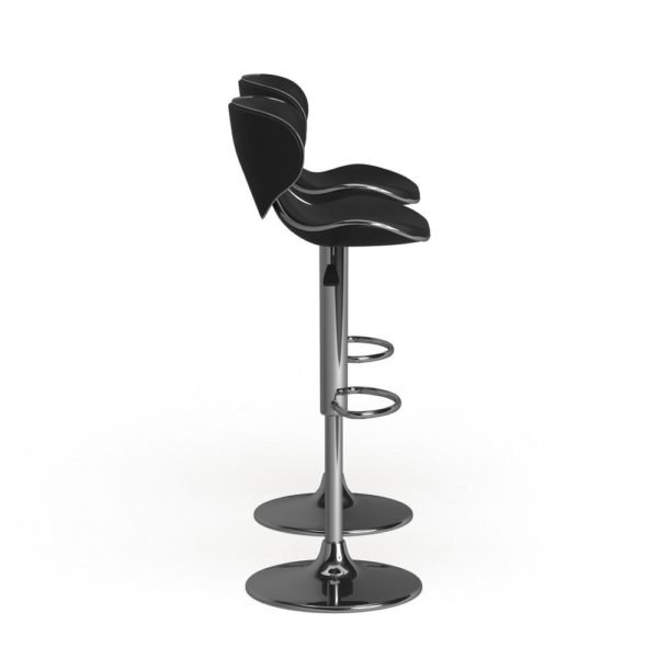 Jazz up the look of your dining or kitchen area with this trendy bar stool. The trendy stool features a bent hourglass seat and back, upholstered in your choice of richly colored vinyl, and accented with chrome detailing. The height adjustable, swivel base includes a footrest that completes the comfort and eye-catching silhouette of this modern and elegant piece.