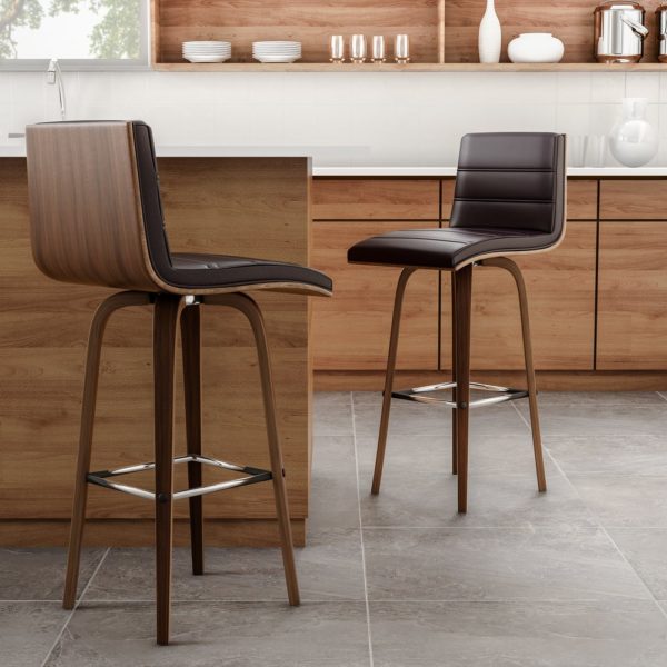 Swivel Counter Height Barstool in Walnut Wood Finish