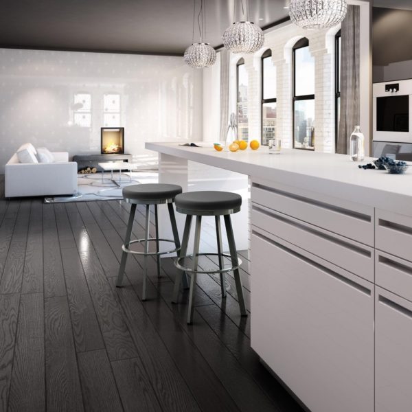 A classic silhouette makes this counter-height swivel stool a welcome addition to any kitchen or home bar. Made from top-quality steel for durability, this metal seating piece features a plush upholstered seat for added comfort. This counter-height swivel stool also includes a contemporary two-tone color scheme that easily complements most existing decor and cabinet finishes.
