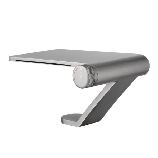 Make a bold statement in your bathroom with this ultra-modern designer faucet, featuring a unique architectural shape and sleek minimalist design. Its futuristic form combines a wide flat spout with a distinctive angled base, creating a striking visual centerpiece for contemporary bathroom spaces.