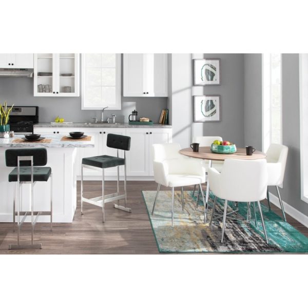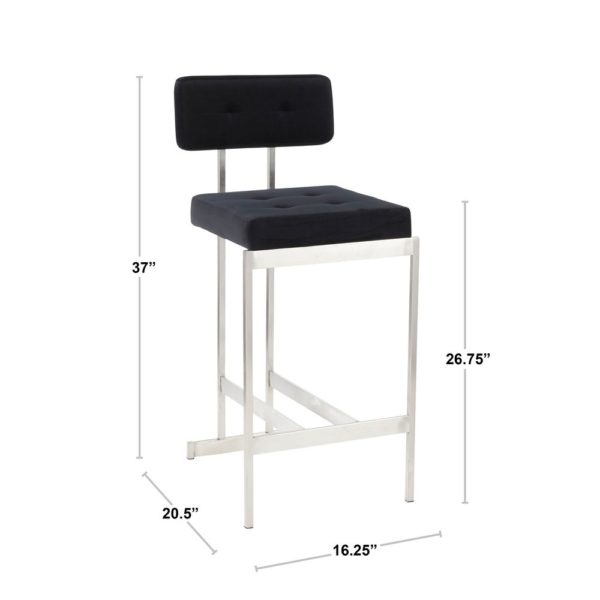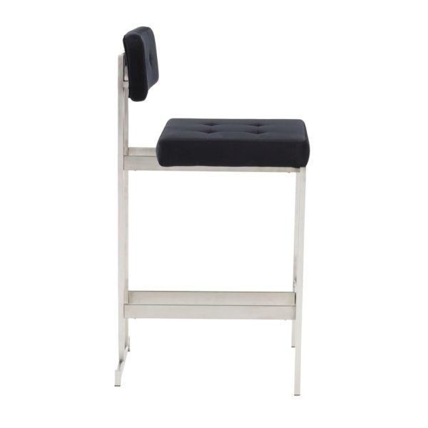 Complement your contemporary style with this gorgeous counter stool. Upholstered in soft velvety fabric with button-tufting for visual interest, this stool has a strong stainless steel frame for stability and reliable performance.