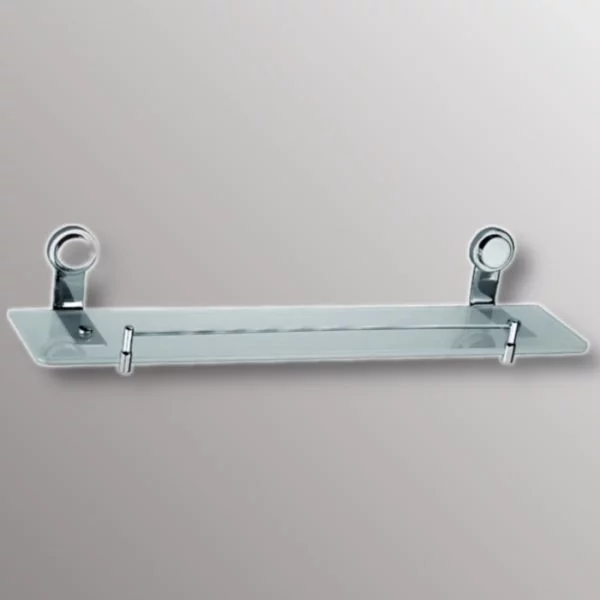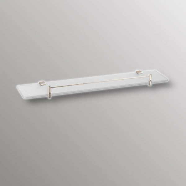 Wall Mount Bathroom 24” Glass Shelf in Chrome and Satin Nickel.