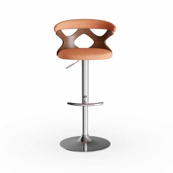 Walnut Wood Mid Century Modern Adjustable Bar Stool – Orange