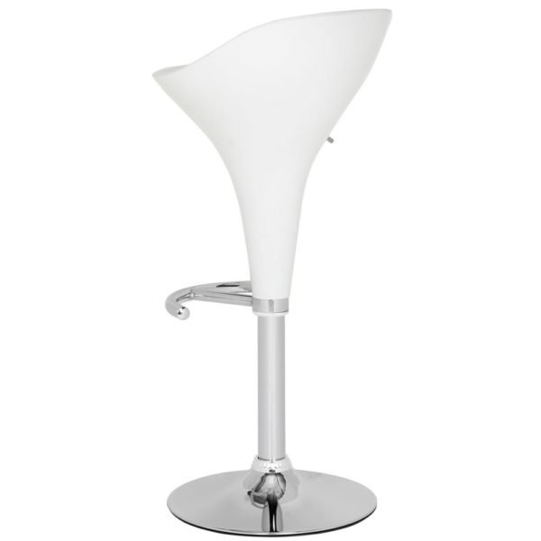 The Gas Lift Barstool’s soft square seat adds contemporary style to the kitchen, bar or bistro table. With sturdy white ABS swivel seat, chrome steel base, and graceful curved footrest, this durable and kid-friendly stool adjusts from 23.6 to 32.3 inches.