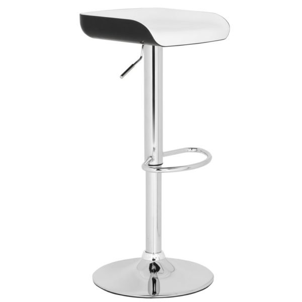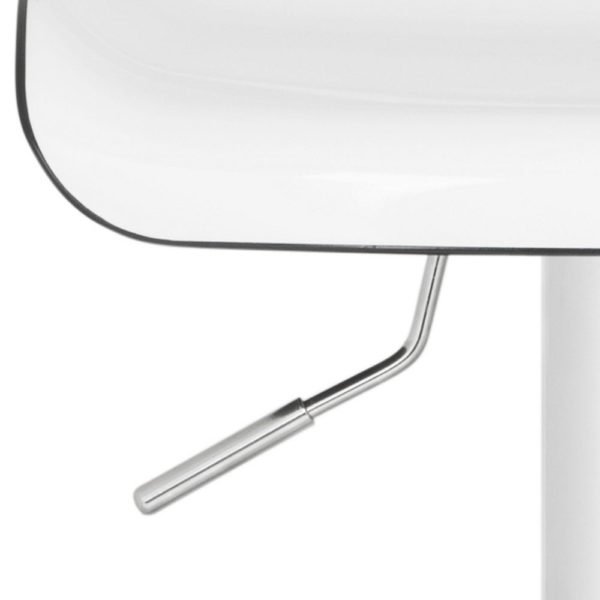 Sleek steel chrome detailing and white shiny white ABS swivel seat make the ups and downs of daily living a breeze. Crafted with gas lift seat that adjusts from 23.6 to 32.1 inches, this stool is an elegant combination of contemporary style and classic lines.