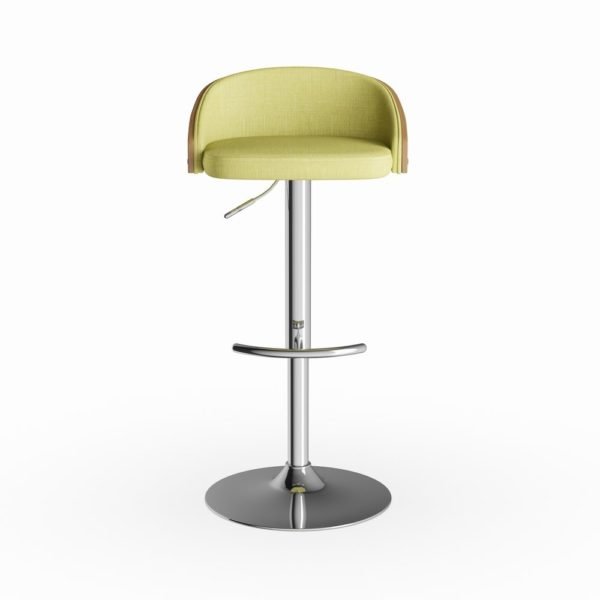 Wood and Chrome Mid-century Modern Adjustable Barstool – Green